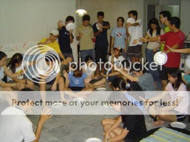 alrites, let me see where to begin. oh ya, let us start from the very beginning shall we? it was a mundane wednesday night. i received a sms from pey pey, asking me if i could meet her mom for a bit cos she just wanna ask more about CG. and i was so prepared to call hock seng to come already... scared cannot handle. but then hock was in malacca and it thought... it's alright la, shouldnt be a problem, just tell her what's CG all about. plus, i was on msn with jon earlier, asked if he could take over CG for me cos i might be working late and no time to prepare. so, we discussed and thought it was nice to play 'win, lose or draw', he seemed so excited... telling me he got mahjong paper and all that prepared already. so come thursday, the day for CG... i called pey pey to double check again, asking if her mom was a non christian and all that and when it was bout 7.30pm, i was nicely having dinner at my condo cafeteria and pey pey smsed that she'll be late with her mom. called jon to double check also, cos he was suppose to take CG and he told me he was going to be late, stuck at pearl point there. so, alrites... sue ann came early, and we met up at the poolside and when we finished dinner, went back home and waited for the rest to come for CG. so, waiting and waiting... came my cg members... a few to be exact. waited till about 8.30, and the bulk of my regular cg members arent around... and a whole lot of them are late. the formationX dudes, jon, chris, rachel, cheryl, a whole bunch la. and i was simply wondering why they ENTIRE bunch was late but i was more worried about how to talk to pey pey's mom, so my mind wasnt really working at 100 percent. and then, i got the call from pey pey, asked me to meet her downstairs at my double lift area. and so i went downstairs. left bel with the keys cos she 'konon' didint bring back her set of keys. went down... came out of lift, walking towards pey pey at the area between the two blocks, didnt see her mom also, was wondering why... then, heard this 'plopp plopp plopp' sounds... and shouts..... and when i turned to see what's it all about....DANG! i was dunked..... it was like an invasion of flour, buckets of water and eggs, courtesy of sri petaling CG. mannn..... i was being ambushed and wah lao.... like an army they came, saw and conquered! haha... then i was standing there helpless, still coming to my senses, thinking... letting it all sink in... it's beginning to make sense now.... bah, i was wet and floured and egged! a blurry image of chris, jon and the whole bunch of dudes running was all i could remember. they sabotaged, and they were gone! chris shouted "guard coming!" and i could see that they all ran off.... so, i went into the lift with the rest of the cg fellas who wasnt ambushing me... but they all knew the sabo plan. man, i felt so used! hahaha. went upstairs, cleaned up, came out and found out that everyone in CG was part of it... all of them knew the plan. duhhh... man, i was amazed at the planning and organizing of this sabotage plan. it was so well thought of i tell you. i couldnt sniff it out... cos of all the CG members, they asked pey pey to call me. and i didint see it coming at all... not from her at least! but i didint see the whole thing coming! okies, sabo was over but where are the dudes??? they sabo and then they just disappeared. i was wondering why... then all of a sudden, they came in bursting into my house with a birthday cake and was singing the birthday song to me, bel and sue ann..... i was stunned and in awe of what they did for me! honest! i never felt so EMO, a happy EMO that is!!! was soooo soooo touched man, you guys couldnt imagine but i was really really touched! man, i was working so hard on my birthday itself when i got back home it was over dy, so i didint really get to actually sit down, have coffee or even a simple dinner with ANY of my friends. so this was like a real significant moment in my life! it's gonna go down as the best birthday celebration for me ever or definately one of the best! i was moved by their efforts and their hearts and their constant jibes of "anything for you CG leader or you're the best". honest! okay... was feeling so touched that i nearly cried.... okay, i teared a tear... but i repeat... i NEARLY cried. and when they prayed for me as a whole CG, i was just taking it all in and just thanking God for what a wonderful CG i have. never have i taken the CG and each of the members for granted and all my efforts of putting the CG into motion and being transparent and growing together in Christ... man, it was not wasted... i felt like family when i'm with my CG members! i am still in awe of it all and even when i woke up today, i still felt like i just won a million bucks! thanks so much you bunch of twits! i love you all to bits! you guys are the best! i'm just a humble servant, here as your CG leader to serve you guys! nothing more! yeah... to cap it off, that wasnt the end... they managed to dunked me into the swimming pool too. not just me but sue ann and bel as well. i managed to pull eric in with me cos i held his hand so tight, he's bound to fall in with me if they throw me. haha, it was funny. then chris shouted "guard coming" again and off went everyone, running... again. went back to clean up and went mamak with the bunch. disecting the incidents during mamak. ahhhh... this has to be one of the moments in my lifetime, one that i will cherish till the day i get old and cranky and unless my memory fails me, i will not forget this. sri petaling CG rocks! yeah... love you all to bits! cheers